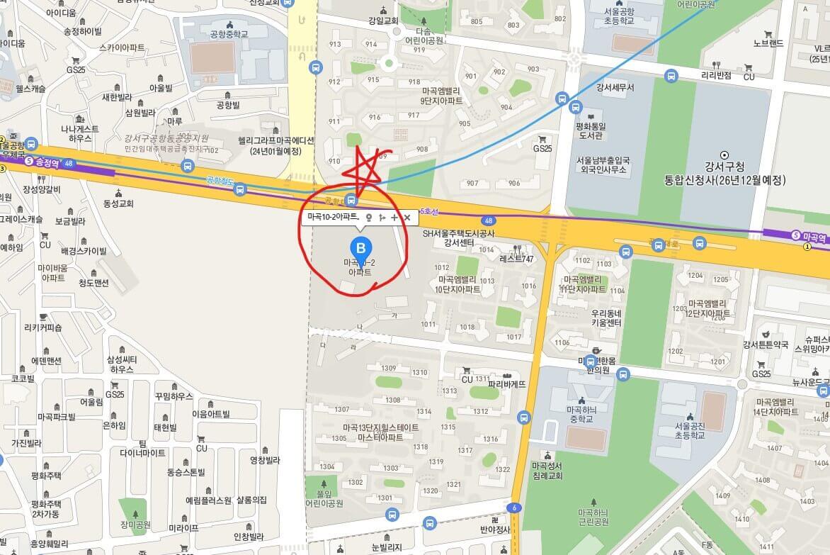 마곡은 9월 10-2 부지와 12월 마곡 택시차고지 이렇게 총 2곳에서 사전 청약 예정입니다. 지도상으로 실제 두 부지는 가깝게 위치해 있어요. 9월 진행될 마곡 10-2 위치는 서울 강서구 마곡중앙1로 72 에 위치해 있습니다.